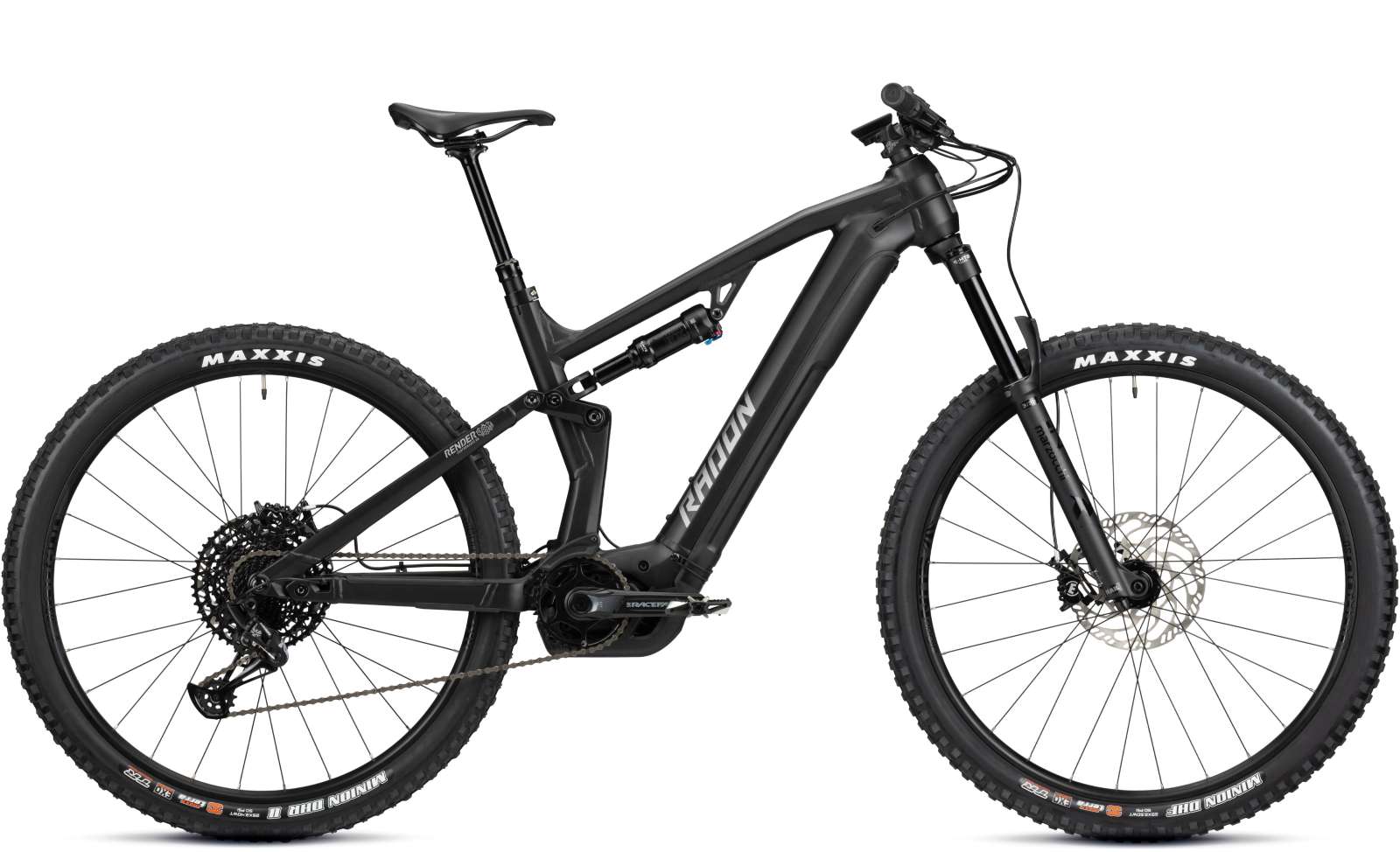 Die nagelneue Marzocchi Bomber Z2 Federgabel präsentiert sich als bemerkenswertes Highlight mit einem steifen Chassis, 34 mm Standrohren und wartungsarmer Rail Sweep Adjust Dämpfung. Die Fox Float Performance Federung am Heck ergänzt die Gabel perfekt mit ihrer 2-Position-Einstelloption, wodurch eine ausgeglichene Dämpfung und unkomplizierte Handhabung gewährleistet werden. Das Herzstück des Bikes bildet der leistungsstarke Bosch Performance CX Motor Gen4 Smart System mit seinen 85 Nm Drehmoment und 250 W Dauerleistung, unterstützt von einem großzügigen 750 Wh Powertube Akku für ausgedehnte Touren. Bei Bedarf kannst Du auch hier nachträglich auf einen 500 Wh oder 625 Wh Powertube umrüsten, um etwas Gewicht zu sparen. Die Bosch LED Remote und das Bosch Kiox 300 Display sind übersichtlich und intuitiv im Cockpit platziert, anpassbar an individuelle Bedürfnisse. Sicherheit bei schnellen Abfahrten ist durch die kräftige 4-Kolben Magura MT5 Bremse mit großen 203 mm Scheiben vorne und hinten gewährleistet. Die 12-fach SRAM Eagle Schaltung mit ihrer breiten 11-50 Kassette bietet eine Vielzahl an Gängen für jede Art von Terrain. Für idealen Grip auf den verschiedensten Untergründen sorgt die Reifenkombination aus Maxxis DHF und DHR II auf SUNringlé Düroc SD37 Felgen. Abgerundet wird das Gesamtpaket mit einer Variostütze und einem Race Face Cockpit für optimale Kontrolle in allen Situationen. Das RENDER AL 8.0 – bereit für jedes Abenteuer!