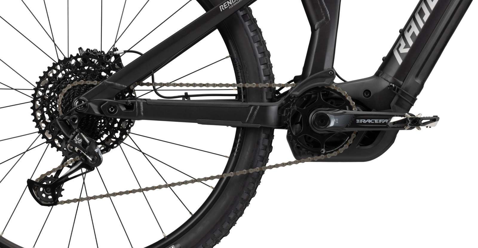 Das RENDER AL markiert den Einstieg in die RADON Pedelec Fully-Welt und bietet mit seinem modernen, hydrogeformten Aluminiumrahmen selbst im Einstiegssegment bereits volle Performance auf dem Trail. Der Alurahmen ist solide und dennoch leicht gehalten, aus Gründen der Gewichtsreduzierung entfällt der aus dem Carbon-Bruder bekannte Flügel und wird durch eine deutlich leichtere, schlanke Dämpferaufnahme unter dem Oberrrohr ersetzt. Der formschöne Rahmen nimmt im Unterrohr den großen 750 Wh Akku auf, der über ein Batteriecover auf der Unterseite leicht zum Laden entnommen werden kann. Alternativ ist der Ladevorgang aber natürlich auch über den externen Ladeport am Sitzrohr mit im Bike verbauter Batterie steuerbar. Die Kabelführung am gesamten Bike ist sehr clean und funktionell, damit keine scheuernden oder klappernden Züge die Freude am Biken trüben. Kinematisch ist das RENDER AL an der bewährten Carbonversion orientiert und wartet mit speziell abgestimmten Federlementen auf.