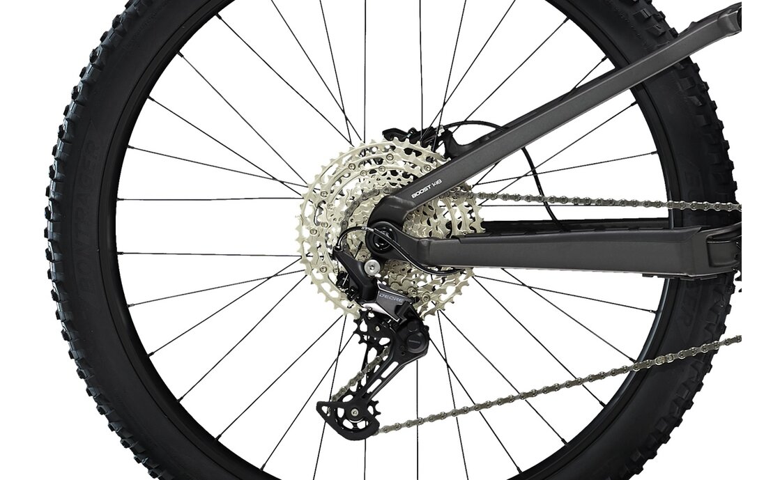 Für alle ambitionierten Cross-Country-Fahrer und Trail-Abenteurer hat dieses MTB-Modell das richtige Schaltwerk: das Shimano Deore RD-M6100. Mit seinem mechanischen Schaltsystem und der 12-fach-Kettenschaltung bietet es einen hohen Schaltkomfort und ist somit ideal für Viel- und Hobby-Fahrer geeignet. Egal ob du dich im fordernden Gelände bewegst oder auf umfangreichen Touren unterwegs bist, das Schaltwerk bietet dir stets präzise und zuverlässige Schaltvorgänge.